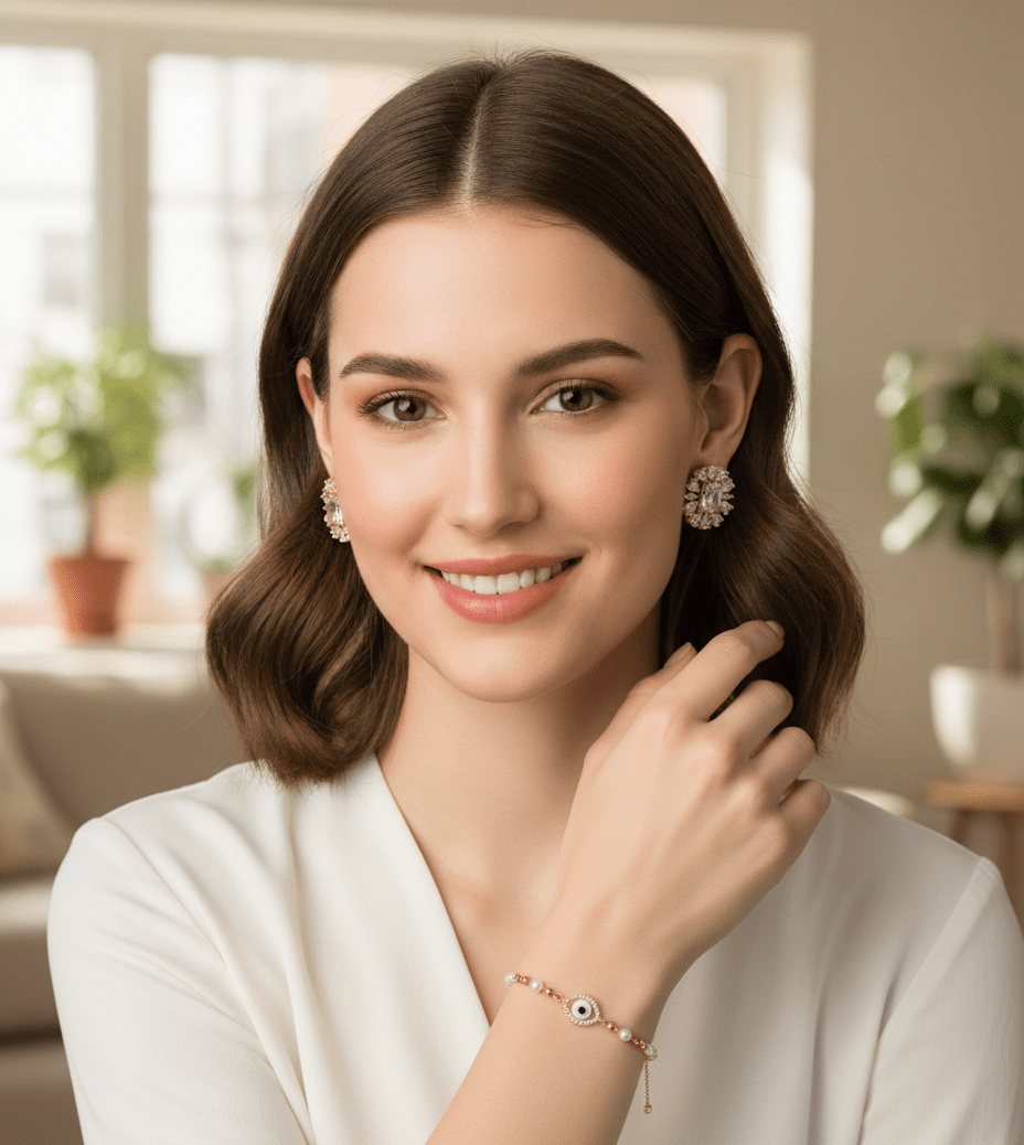 AYZEL™ Pearl Beaded Evil Eye Bracelet with Cubic Zirconia for Women